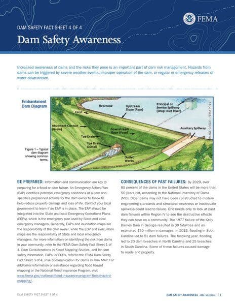 The resource focuses on Dam Safety Awareness, emphasizing the importance of understanding the risks dams pose and the need for effective dam risk management. It highlights the consequences of past dam failures and underscores the critical role of communication, emergency action plans, and partnerships in ensuring dam safety. The document also mentions specific examples of dam failures and the potential impact on communities.