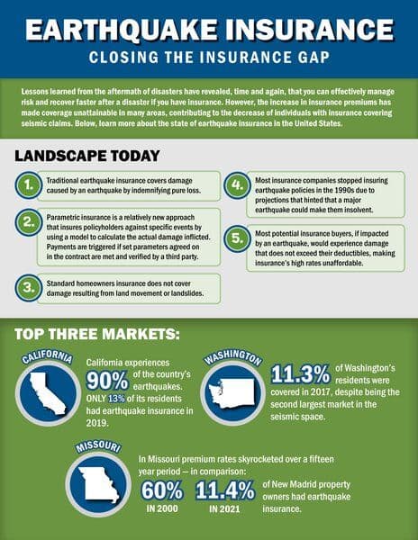The resource provides insights on earthquake insurance and the challenges faced in acquiring appropriate coverage, particularly in areas prone to seismic activities. It discusses traditional earthquake insurance that indemnifies losses incurred during an earthquake, as well as newer approaches like parametric insurance. The text emphasizes the limitations of standard homeowners insurance in covering damages resulting from land movement or landslides. It also highlights the decreasing trend in earthquake insurance availability due to companies ceasing to provide such policies, leading to affordability issues among potential buyers.