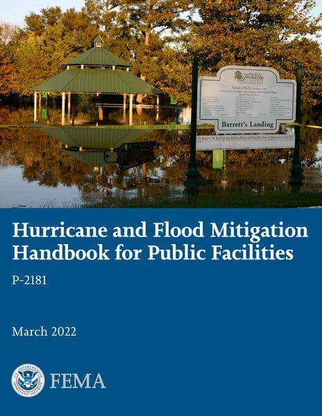 The Hurricane and Flood Mitigation Handbook for Public Facilities (FEMA P-2181) provides comprehensive mitigation solutions for basins and dams vulnerable to erosion, undercutting, scouring, and other related issues. It includes strategies such as installing riprap, screens, vegetation, and strengthening risers for basin mitigation. For dam safety, it covers stability, spillway capacity, temporary storage capacity, surface erosion control, and seepage reduction. The handbook also emphasizes emergency planning for dam safety incidents to protect lives and infrastructure.
