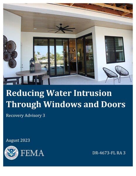 This advisory provides recommendations to reduce water intrusion through windows and doors during extreme wind events, based on observations from Hurricane Ian in Florida. It addresses performance grade ratings, installation techniques, and maintenance practices to prevent damage from wind-driven rain.