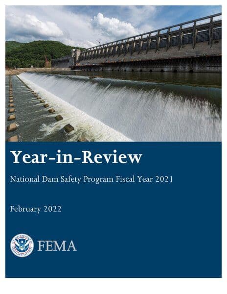 The Year-in-Review document for the National Dam Safety Program for Fiscal Year 2021 highlights achievements and activities, including trainings, publications, grants, and conferences related to dam safety and risk reduction. It emphasizes collaboration between FEMA and stakeholders to enhance dam safety and mitigate risks to human life, property, and the environment from dam-related hazards.