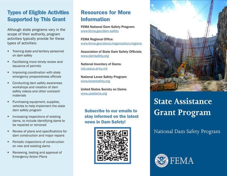 The National Dam Safety Program (NDSP) State Assistance Grant Program provides financial assistance to states to strengthen their dam safety programs, aiming to reduce risks from dam failures and protect life, property, and the environment. The program supports various activities, including training state personnel, improving permitting processes, enhancing coordination with emergency preparedness officials, conducting awareness workshops, purchasing equipment, and increasing dam inspections. Funding for the program is allocated annually and through the Infrastructure Investment and Jobs Act of 2021.