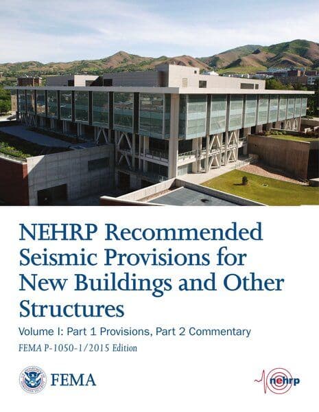 The NEHRP Recommended Seismic Provisions for New Buildings and Other Structures - Volume I provides detailed seismic design criteria for various building components and structures. It covers seismic load effects, modeling criteria, equivalent lateral force procedure, diaphragm design, structural walls, foundation design, and simplified structural design criteria. The document offers guidelines on analysis procedures selection, seismic load combinations, and design and detailing requirements for materials like steel, concrete, masonry, and wood. It includes chapters on seismic design requirements for nonstructural components, material-specific seismic design and detailing, seismic response history procedures, and seismic design requirements for nonbuilding structures.