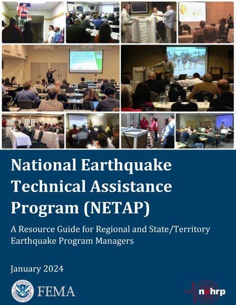 The National Earthquake Technical Assistance Program (NETAP) Resource Guide provides information on NETAP training courses offered by FEMA to assist state, tribal, territory, or local government entities with earthquake risk reduction. The guide outlines the training delivery methods, eligibility criteria for states and territories, and the process for requesting and delivering NETAP training. Various courses are available on topics such as nonstructural earthquake damage, earthquake-resistant design and construction, safety and mitigation for schools, and post-disaster building safety evaluation. Trainings include in-person and web-based formats, with specific responsibilities outlined for requesting organizations.