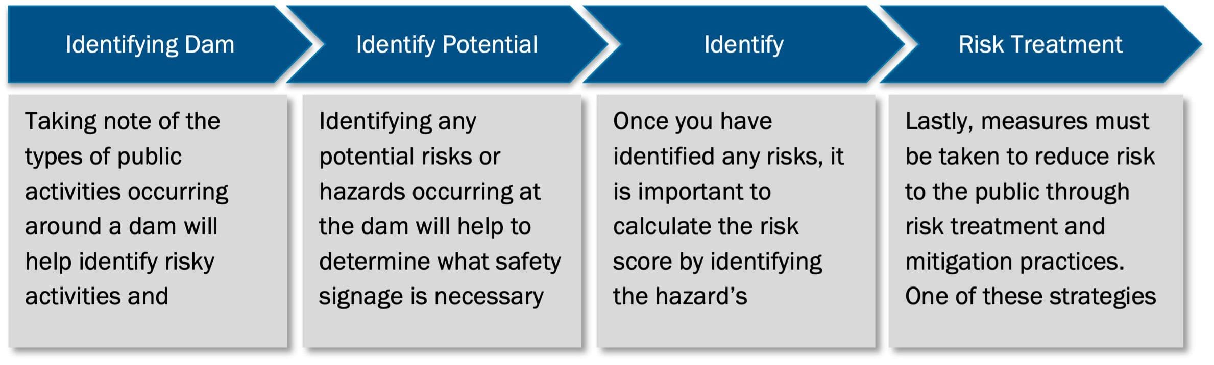 Identifying Dam Activities – Taking note of the types of public activities occurring around a dam will help identify risky activities and hazardous areas the public may encounter. Identifying Potential Hazards – Identifying any potential risks or hazards occurring at the dam will help to determine what safety signage is necessary to reduce any risks to the public. Identifying Frequency/Severity of Risks – Once you have identified any risks, it is important to calculate the risk score by identifying the risk’s frequency and severity. Risk Treatment and Mitigation – Lastly, measures must be taken to reduce risk to the public through risk treatment and mitigation practices. One of these strategies is to develop and instill safety signage.