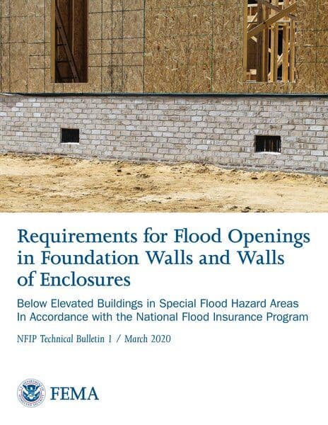 NFIP Technical Bulletin 1 from March 2020 provides detailed requirements for flood openings below elevated buildings in Special Flood Hazard Areas, in accordance with the National Flood Insurance Program (NFIP) regulations. It includes specifications for different types of enclosed areas, flood openings, and guidance on documenting building elevations using the NFIP Elevation Certificate. The bulletin explains the importance of compliance with NFIP requirements to reduce flood damage and lower flood insurance premiums.
