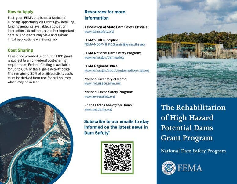 The Rehabilitation of High Hazard Potential Dams Grant Program Brochure provides an overview of the federal funding available to eligible states for the rehabilitation of dams that do not meet minimum safety standards and pose risks to life and property. It details the funding process, eligibility criteria, and activities eligible for funding under the program.