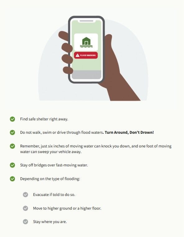 Flooding is a temporary overflow of water onto land that is normally dry. Floods can result from rain, snow, coastal storms, storm surges, overflows of rivers, and dam failure. Floods can be dangerous. People die by drowning when they don’t evacuate before floodwaters come or when they enter floodwaters. Floods can damage buildings and roads, cause power outages, and create landslides.